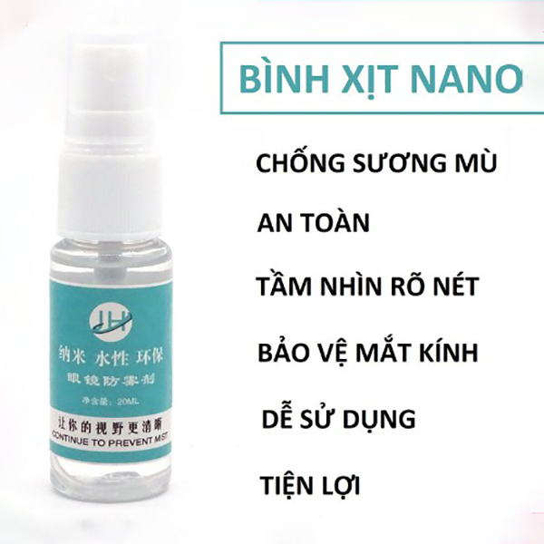 Bình xịt nano chống bám hơi nước, sương mù đa năng 20ml, phù hợp sử dụng trên mọi loại kính ( kính cận, kính thuốc, kính râm, kính bơi, kính lặn, kính đọc sách, kính lão, kính trượt tuyết, kính chắn gió, kính mũ bảo hiểm, kính thực tế ảo VR, kính ô tô).